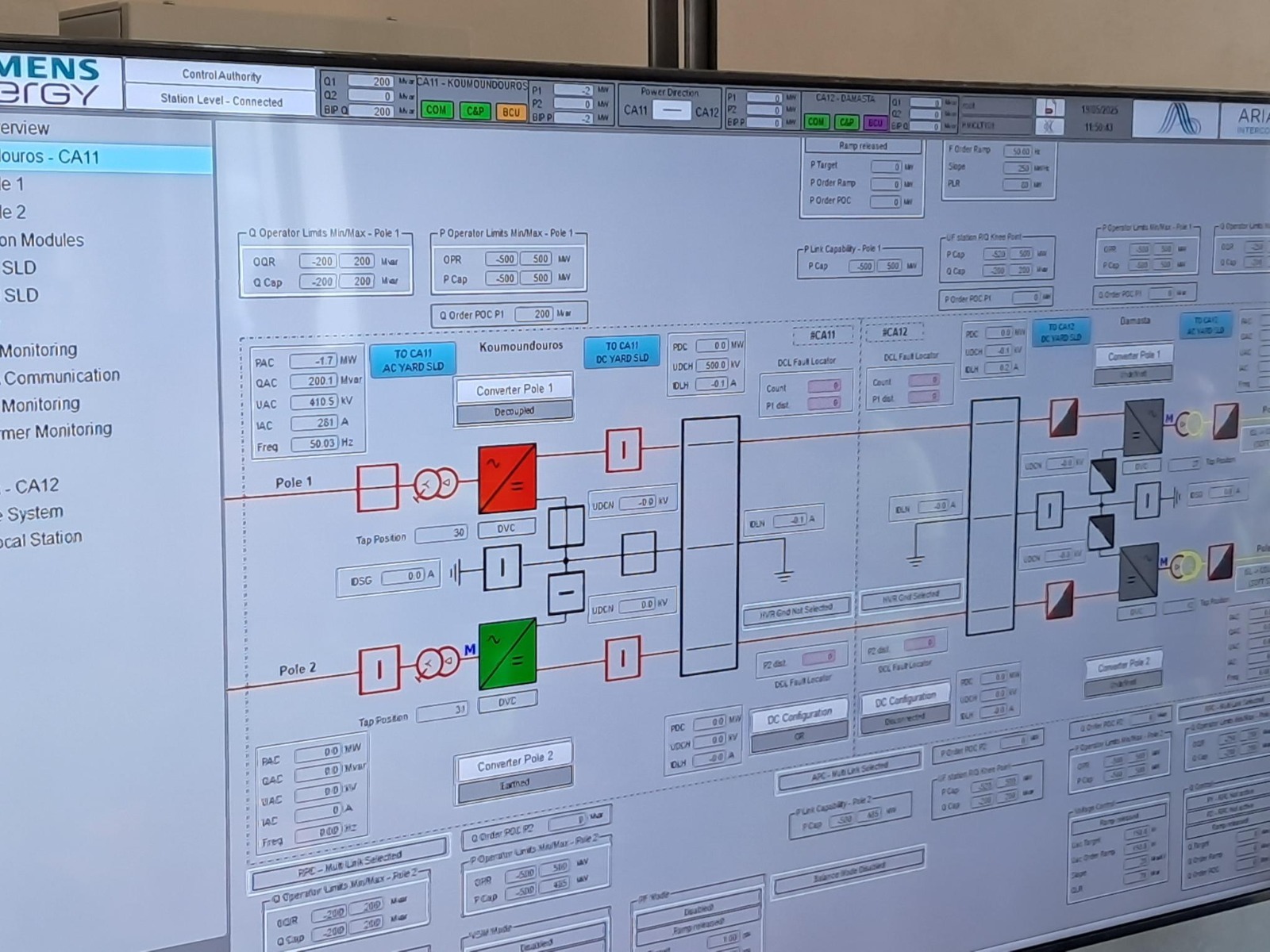 Ειδικότερα, πραγματοποιήθηκε για πρώτη φορά η ηλέκτριση των Σταθμών Μετατροπής και παράλληλα έγχυση αέργου ισχύος από τους Μετατροπείς προς το ηλεκτρικό σύστημα της Αττικής και της Κρήτης, αντίστοιχα.